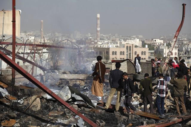 △ 2016年2月14日,沙特领导的联军持续空袭也门首都萨那 来源:视觉中国
