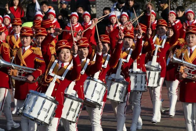 △ 2月13日,朝鲜啦啦队在韩国江原道江陵市表演  来源:视觉中国