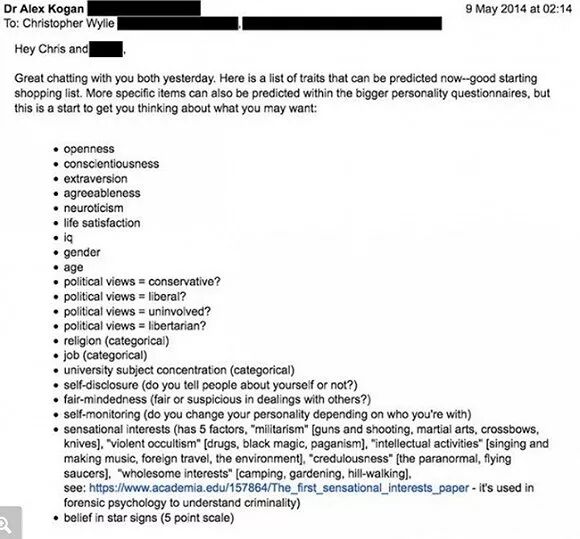2013年,年仅23岁、正在攻读流行预测博士学位的怀利看到了科辛斯基等人的论文,当即意识到论文中提到的算法和预测能用于竞选活动。