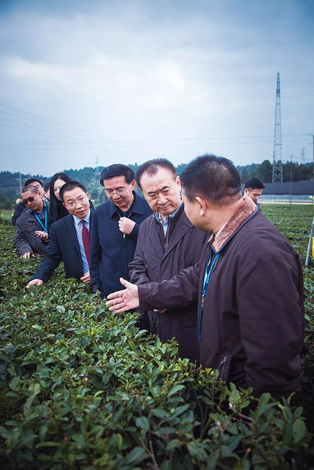 2014年12月2日,万达集团董事长王健林(右二)考察丹寨茶叶种植。