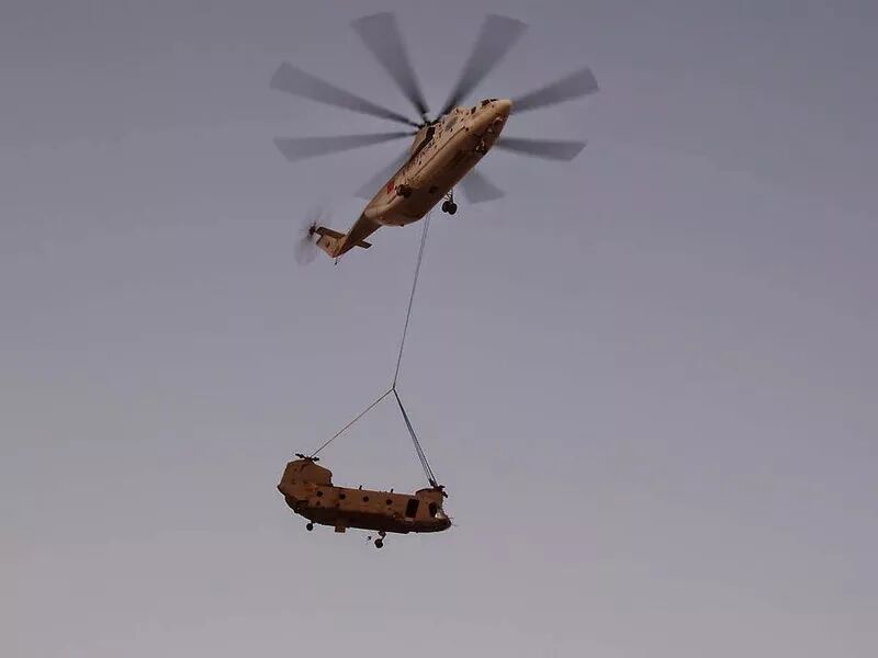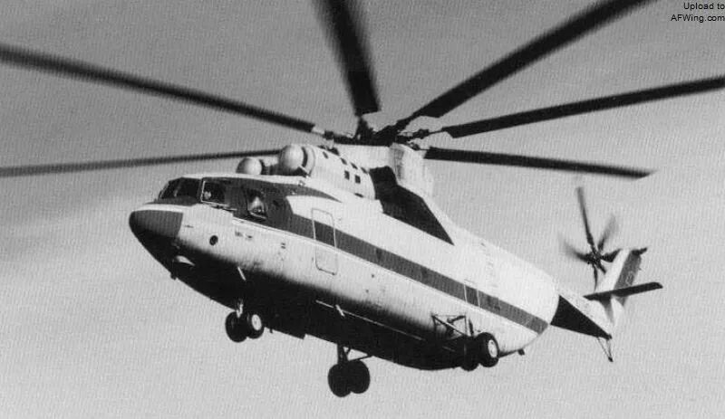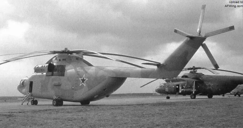 1957年问世的米-6“吊钩”曾霸占世界最重直升机称号多年,该机起飞重量44吨,载重12吨,并在1961年成为世界上第一种飞行速度超过300公里/小时的直升机。该机问世10年后,苏联人开始研制更大型的后继机,能装载20吨货物飞行超过400公里的距离。