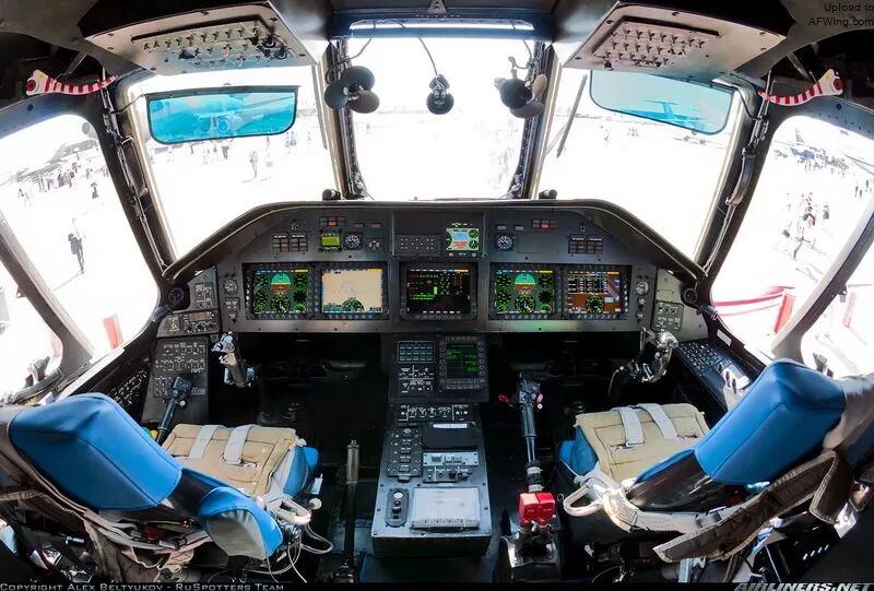 那么,米-26T2具有什么样的新航电设备呢?该机使用新型NPK-90-2飞行导航计算机取代了之前独立的飞行控制和导航设备,座舱使用五台MFI-10-7V多功能显示器和两个数据输入面板取代了老型号的模拟仪表,此外还具有PKV-26D数字自动驾驶仪和两台Baget-53-15计算机,具有精确的自动悬停功能。