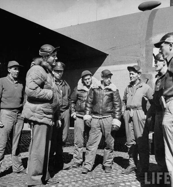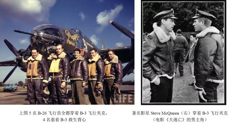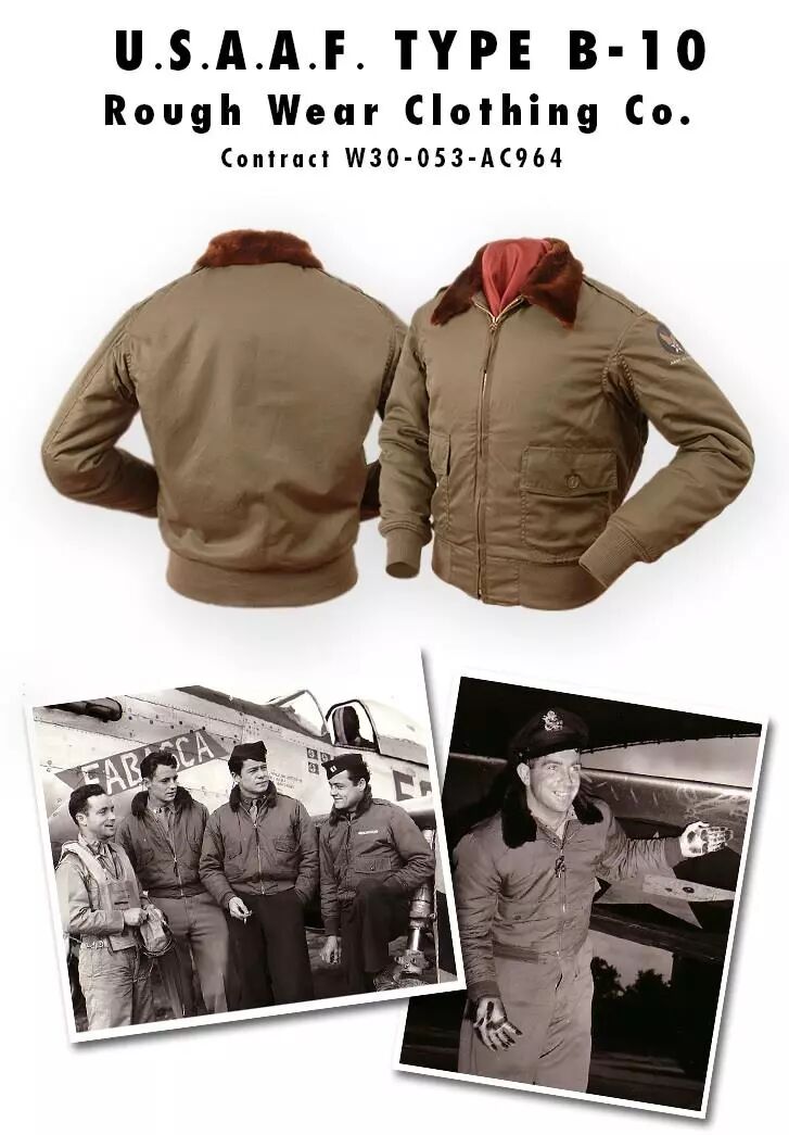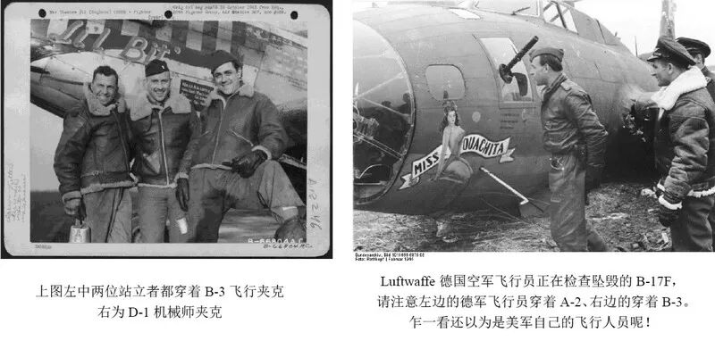 上图右侧站立者穿着B-10飞行夹克,左侧站立者为A-2飞行夹克