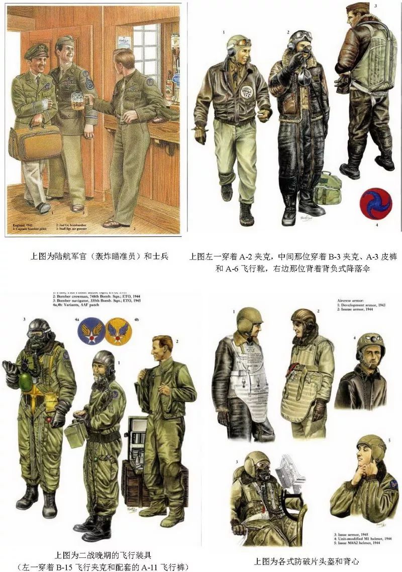 U.S Army Air Forces,也就是二战的美国陆军航空队,前身为U.S Army Air Corps,1941年6月编制扩建/改建为USAAF美国陆军航空队,隶属美国陆军,1944年其规模达到顶峰,拥有240万人,超过24000架飞机(另一说为80000架飞机,不过未经考证),其下共有17个航空队分部在世界各地。1947年独立成为USAF美国空军。 说到二战美军的飞行员装备,即使用今天的眼光来看,感觉不但功能全面,而且非常实用、美观,穿着起来也明显比其他国家的飞行员更酷。由于装备品种繁杂,型号众多,我只能选一些有代表性的来说明一下。下面就从头到脚来看看这些主要的个人装备。