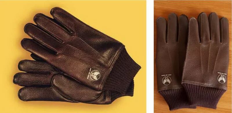 五、A-10飞行手套 1938年标准化列装,属于Intermediate系列,也就是使用范围为-10~+10摄氏度。通常由深褐色山羊皮制成(也有部分由小马皮制成),带有羊毛的针织袖口和内里(某些A-10手套的内里由驼绒制成),规格号为Spec No. 94-3093,制图号为Drawing No. 39D1569,可以配合陆航的大多数飞行夹克使用。