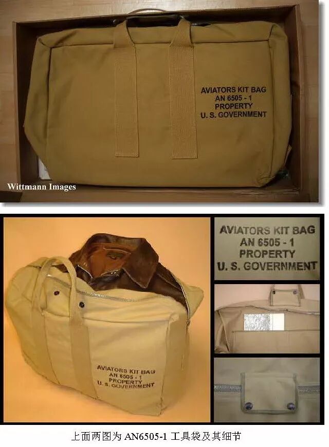 4、AN6505-1工具袋 由帆布制成,顶部有双向拉链(一般为 Talon或者Crown),可以装入降落伞包、或者一件B-3夹克、或者2件A-2飞行夹克以及一些小物品,坚固而实用。