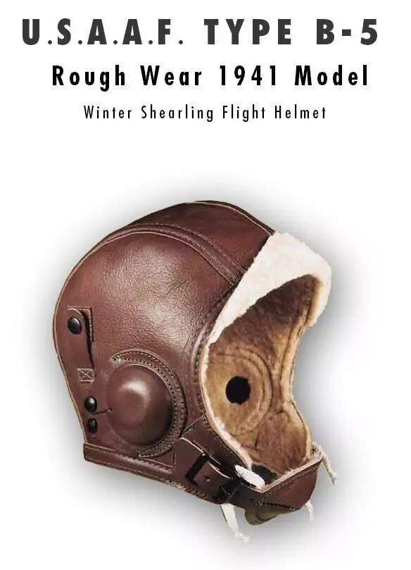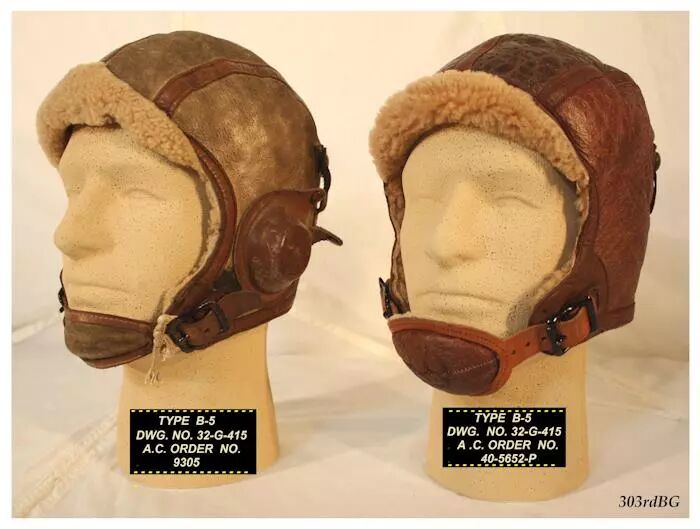 3、B-5冬季飞行帽 B-5飞行帽1933年5月2日标准化列装,帽体由1/4英寸厚的带毛绵羊皮制成,它是美国陆军航空队飞行人员的标准装备。