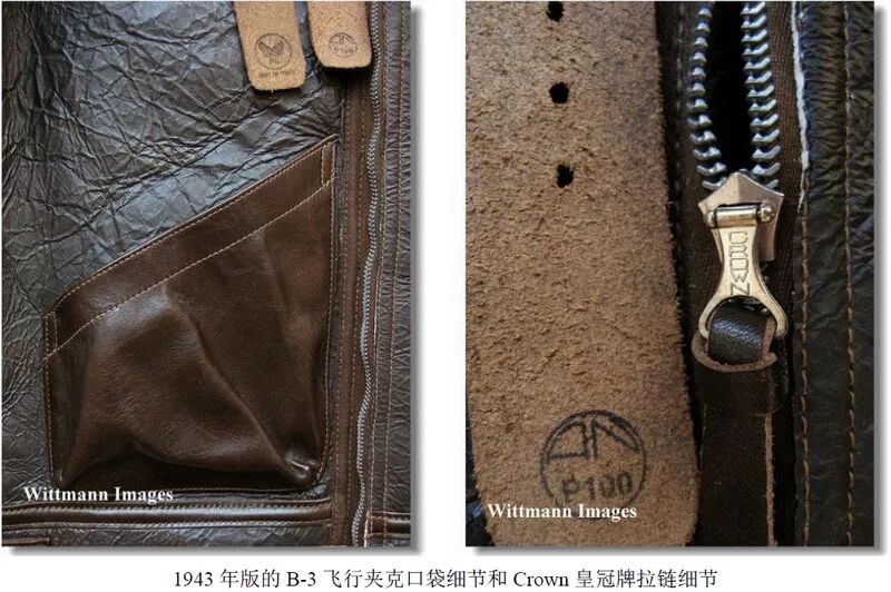 上图左侧为A-2飞行夹克,右侧为B-10飞行夹克