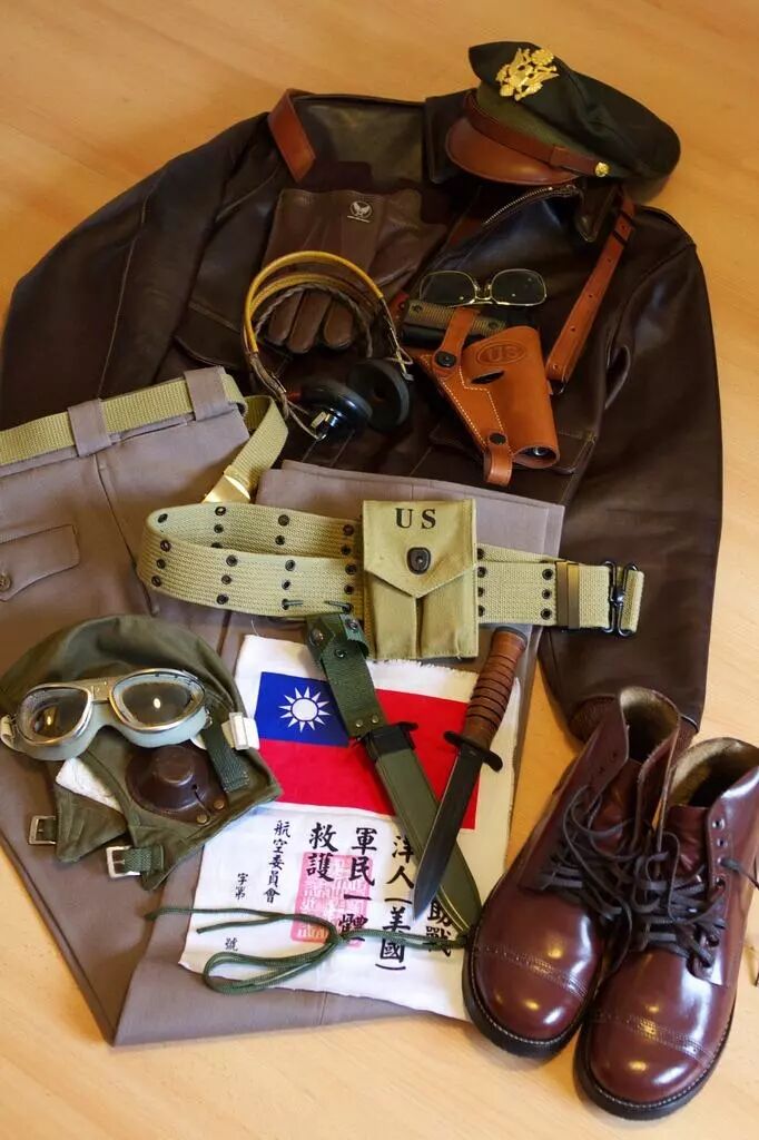 上图为穿着Tanker Jacket、配戴着M-3肩套的“飞虎队”飞行员