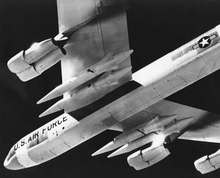 由于研制成本大幅上升,再加上XB-70遭遇强烈政治反对(反对派包括艾森豪威尔总统在内),该项目在1959年12月1日被美国国会砍成只制造一架研究原型机的项目,省下的经费将用于采购更多的B-52和洲际弹道导弹。但在美国空军的强烈反对下,1960年重新制定的XB-70项目恢复到12架试飞原型机的规模,并落实了两架XB-70原型机和一架YB-70预生产型的经费。1959年9月F-108项目被取消大幅增加了“女武神”的研制成本,此时参与项目的所有人都知道大事不妙了。 1961年肯尼迪总统就职后,XB-70项目回光返照,虽然他的国防部长罗伯特·麦克纳马拉一口气砍掉了十几个飞机研发项目,还削减了轰炸机总预算,但XB-70还是生存了下来,人们希望该项目在已经花掉10亿美元后能带来实际回报。  挂载4枚GAM-87的B-52