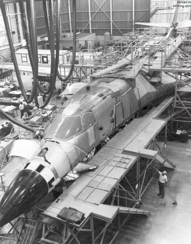 1960年5月鲍尔斯驾驶的U-2在苏联上空被SA-2地空导弹击落后,美国空军认识到在地空导弹的威胁下,高空高速轰炸机的生存能力正变得岌岌可危。SA-2可以毫不费力地爬升到“女武神”的飞行高度,而该机在3马赫下是不可能实施规避机动的(洛克希德SR-71“黑鸟”的飞行高度更高,受到的威胁要小一些)。在获知苏联正在研制3马赫的米格-25战斗机,专门用来拦截高空轰炸机后,B-52轰炸机开始演练起了低空突防战术。一夜之间,XB-70所代表的高空高速轰炸机流派就过时了,美国空军决定任何新研制的轰炸机都必须具备低空突防能力,并能发射如GAM-87“空中闪电”这样的火力圈外核导弹,这些要求最终导致了XB-70的消亡和罗克韦尔B-1“枪骑兵”轰炸机的问世。  生产中的B-1A,注意机鼻两侧的小翼,在低空飞行中用于抵消乱流引起的颠簸
