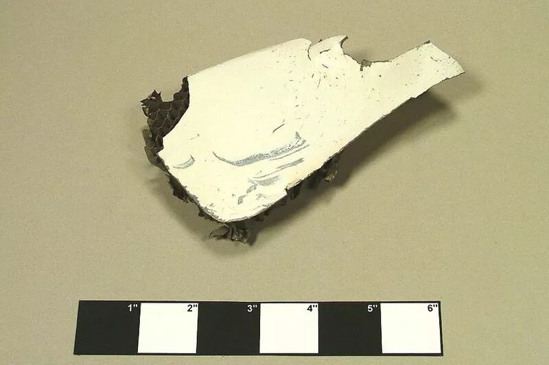 挑战极限 北美在研制XB-70的过程中遭遇的主要挑战是寻找一种能承受3马赫速度下304摄氏度气动摩擦高温的金属材料。尽管洛克希德为其SR-71选择了稀缺的钛金属,但北美选择采用不锈钢蜂窝夹芯三明治结构来制造超过XB-70的100多片蒙皮。这种材料比钛更容易加工,价格也更便宜,但在高速下有可能会分层,在地面也容易因磕磕碰碰而损坏。此外XB-70采用的4000PSI高压液压系统具有一些钛合金和不锈钢零件,许多钢制零件都要从钢坯经过昂贵切削而成。  在XB-70坠机现场寻获的不锈钢蜂窝夹芯蒙皮