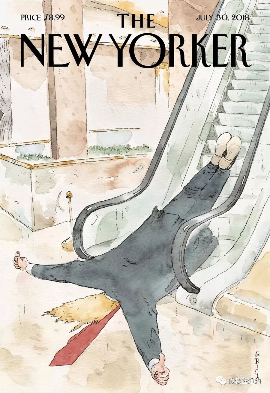 这个封面我戏称为“特朗普扑街”。你看他脸着地重重摔倒在电梯上,明明是“epic fail”,他却还倔强地双手翘起大拇指,好像在说“I am OK”。