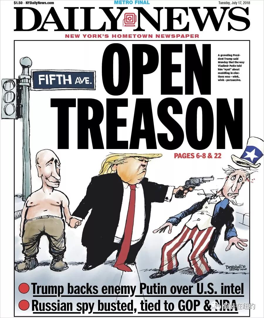 纽约小报《每日新闻》干脆直接在头版印上了“公开叛国”。