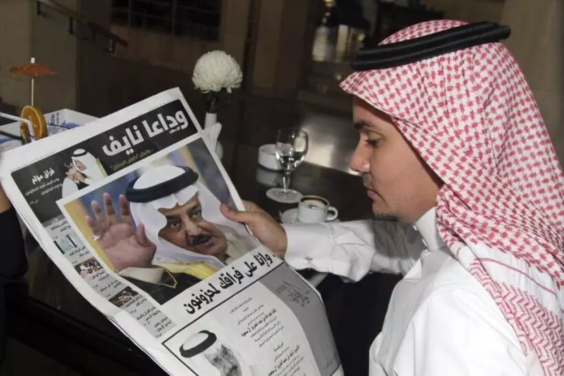 沙特民众在报纸上看到苏德里王储去世的消息。