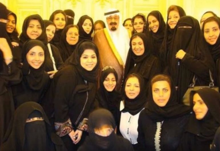 阿卜杜拉国王娶了30任妻子,与部分妻子合影。