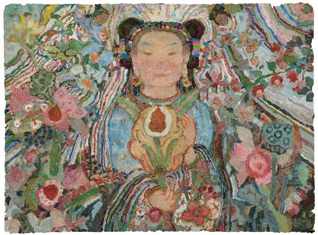 我去的是一所民办学校,由当街几个民房改造,要开朝会或者是什么集合要到茅棚里面去,一个工棚,就在那样的地方聚集了非常优秀的老师。去的时候我想我就是这样的中学了,走起来咯吱咯吱响的摇摇欲坠的楼梯和木板,低矮的教室,黯淡的课堂。但是光彩夺目,因为我的老师。 第一师范当时是很难考的,在我那一届是公开招生,择优录取,我们那个城市考了七个人,我们班占两个。一个民办中学占了七个学生中的两名,在当时是让大家大跌眼镜的。我没想到,我自己心知肚明没法录取,第一师范,革命的摇篮,不会录取我,但我没想到。 你说为什么生活这样安排,我就这样去了第一师范呢?而且我真感恩生活这样的安排,每一个地方回想起来,我都觉得它安排得真好,非我所想,非我所思。所以我的作品里面全部是画的自尊、自爱、自觉,然后才有自我超越。 我都是讲超越精神,现实的很硬,文学的、艺术的、理想的东西可以软化它。我中学的日常全部是在这种阅读中间度过,我如饥似渴,我读的东西大家都笑话我,我又不系统,全部都凭爱好读。 我两两相对地读。我读维克多·雨果的时候,我肯定读巴尔扎克。因为维克多雨果他是天上的星辰,是有光的,是星星一样照亮我的人。巴尔扎克是人间喜剧,他是地上的灯。这不是我说的,是评论家说的,他说巴尔扎克是一盏一盏亮过来的,像地上的灯。 只要能看的,我就挑最好的看。看到维克多·雨果,看到托尔斯泰的时候,很多东西就一览众山小。那有什么办法呢?胃口就是这样子的了。我觉得这种胃口也很好,你就学会了层次感,你就知道了层次,文学的层次。 我的成绩一塌糊涂,因为我上课偷看小说,我的老师不文学的时候,我自己就在那里文学了。我不求考试成绩很漂亮,我不是那种人,考试成绩漂亮了那是自然的,但是我说难道我自己读一肚子的东西,比不过那80分、90分、100分吗? 我这么随便说的时候,我的英语老师就表扬我:太对了,蔡皋,你真是,80分算什么,85分算什么?蔡皋,对吧?我就没有学好英语,对不住他。我没有学好英语就是因为我的本心告诉我,我时间不够,我只能捡我最要紧的学。 我要画画的,虽然当画家的思想是在当年被批得一塌糊涂的东西,说我是资产阶级成名成家的思想。他们不了解我,我也不求了解,其实是因为画画的时间是我最快乐的时间。 ▲ 蔡皋作品《小满》