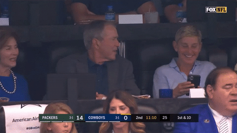 上周末,Ellen DeGeneres 在美式橄榄球联盟达拉斯牛仔队的主场看了一场比赛,被拍到和美国前总统小布什坐在一起,两个人在观看球赛的过程里有说有笑。