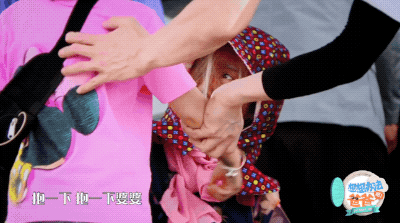 朱茵化了老年人的特效妆,打扮成景区里卖零食的本地农妇,包裹得严严实实,出现在老公和女儿面前。