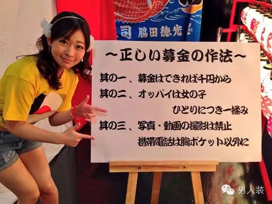 严谨认真的岛国人为了保证活动秩序还立下了《正确募捐的方法》的公示。1:募捐金额一千日元起,上不封顶。2:7个女优每位只可以摸(揉、抓)一下3:禁止拍摄,并且不许把手机放在上衣口袋中(谨防偷拍)。