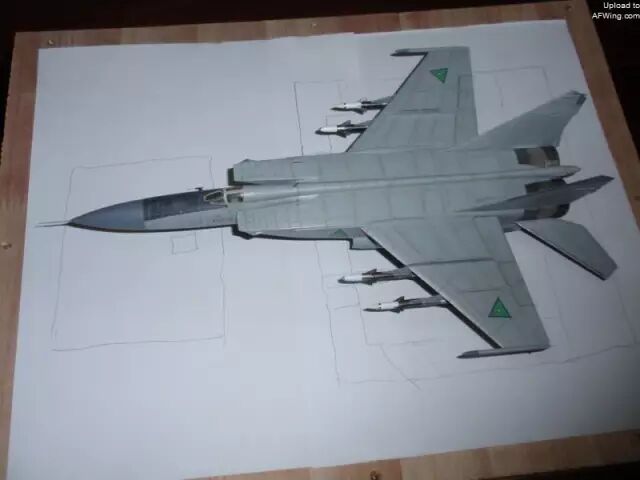 伊拉克米格-25的一大特征就是主翼上的KDS-115干扰弹发射器。笔者使用遮盖带,按照图纸描出KDS-115的大致形状。
