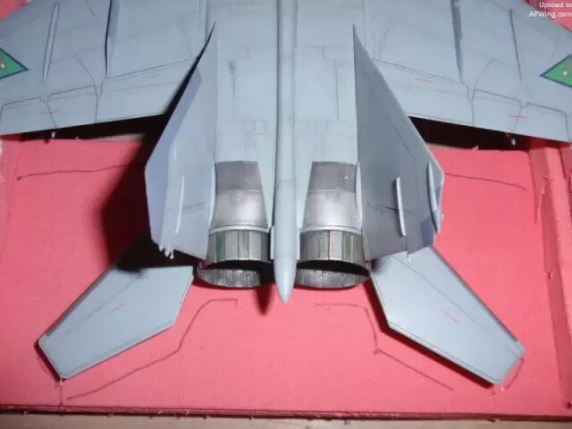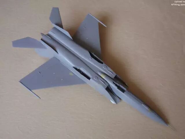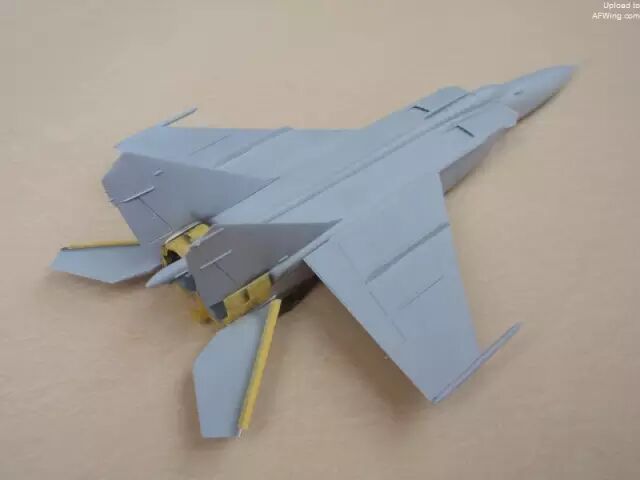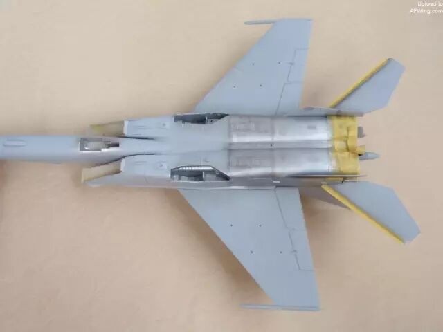 机身全部组装完毕。可以发现其实需要打磨的区域非常有限,只要你能动动脑筋更换一下组装步骤。进气口侧面的白色零件是自制的SPO-15雷达告警器。