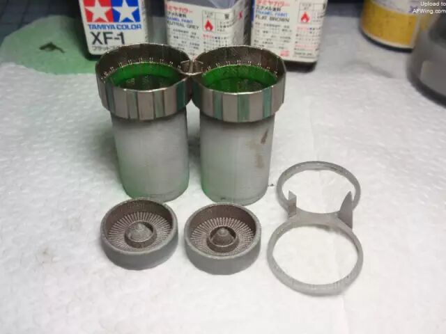 火焰稳定器也同样涂上亚光浅灰色表现灼烧效果,放射型的支柱则为黑铁色。