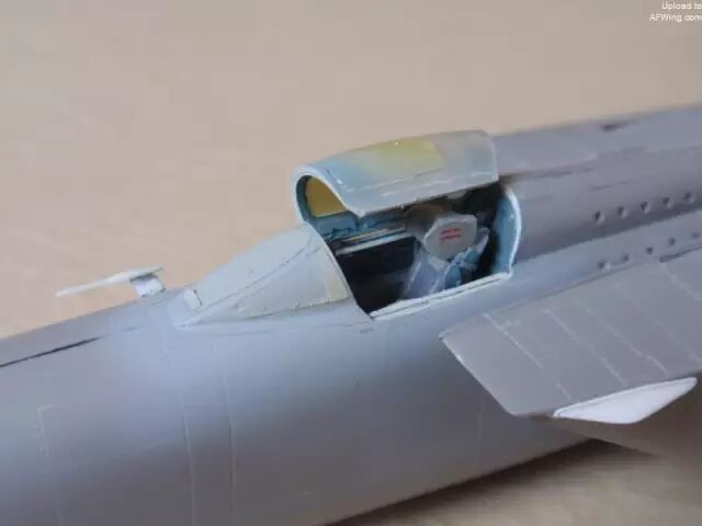 座舱内一部分细节用胶板追加。注意仓盖内侧的卷帘使用田宫AB补土塑出,此卷帘在必要时可拉下以保护飞行员免受核爆炸后的强光刺激。