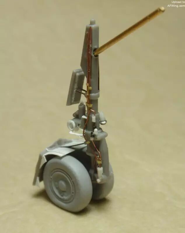 前起落架需要自制很多细节并追加管线。注意起落架照明灯使用的是MV Product的透明光头。