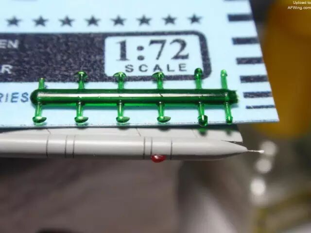 ARMORY的树脂R-40 “毒辣” 导弹用铜棒插入事先打孔的挂架。
