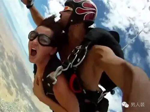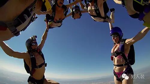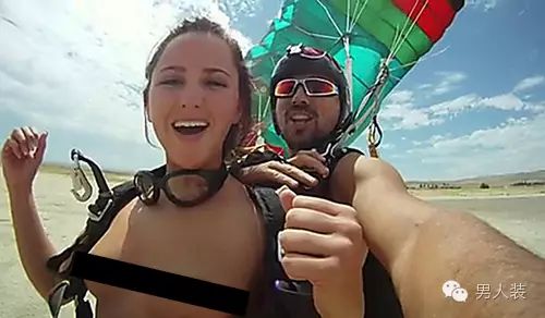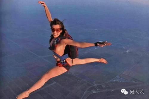 ② 哪怕你是跳伞老手,也要做好心理准备,一丝不挂会让你的下落速度再快一倍。