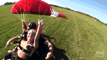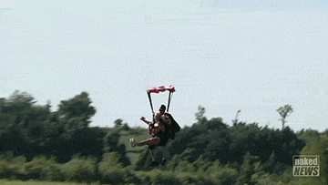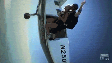 万恶的美帝有一家名叫“果新闻(N*ked News)”的媒体,他们让无论播报什么都果着的女主持人体验了一把果体跳伞(N*ked Skydiving)。上图中这位幸运的男士就是本次跳伞的教练,因为妹子没有丝毫经验,因此必须和教练完成双人跳。