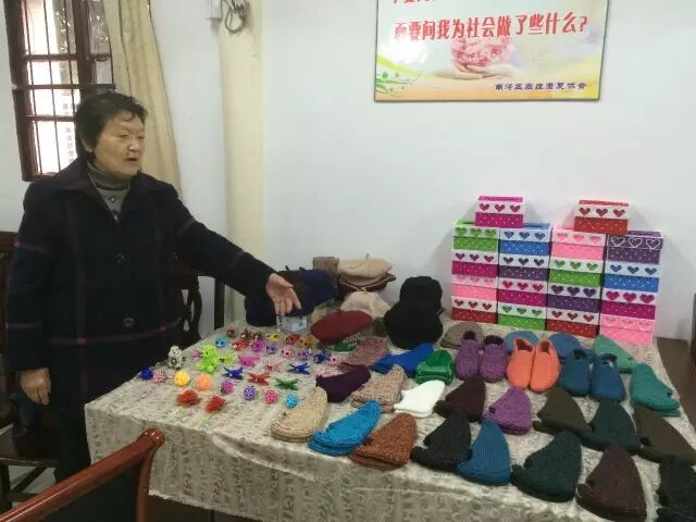 走进协会民居,一楼是活动室,摆满了会员手工做的帽子、毛线袜和储物柜,二楼有活动室和办公室,总共有150多平米。