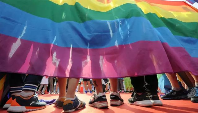 题图为2017年5月21日,山西省太原市,一场以“青春不留白”为主题的跑步运动吸引了众多市民参与,不少参与者高举“彩虹旗”呼吁将爱与激情坚持到到底。来自视觉中国。