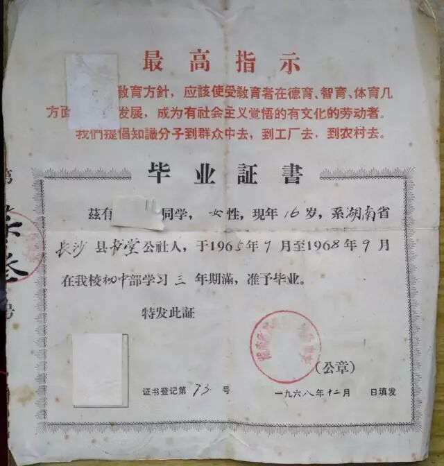 而彼时身在茶陵师范的陈洁(化名),却为了高考准备已久。陈洁是“老三届”中最小的68届初中生,她在1965年下半年进入初中,到了1966年上半年,文化大革命就开始了。从1966年5月16日接到通知开始,学校全部停课,陈洁和同学们开始写大字报、批斗,直到1968年毕业,她再也没碰过书本。初中毕业后,陈洁就成为知青下放农村,失去了读高中的机会。