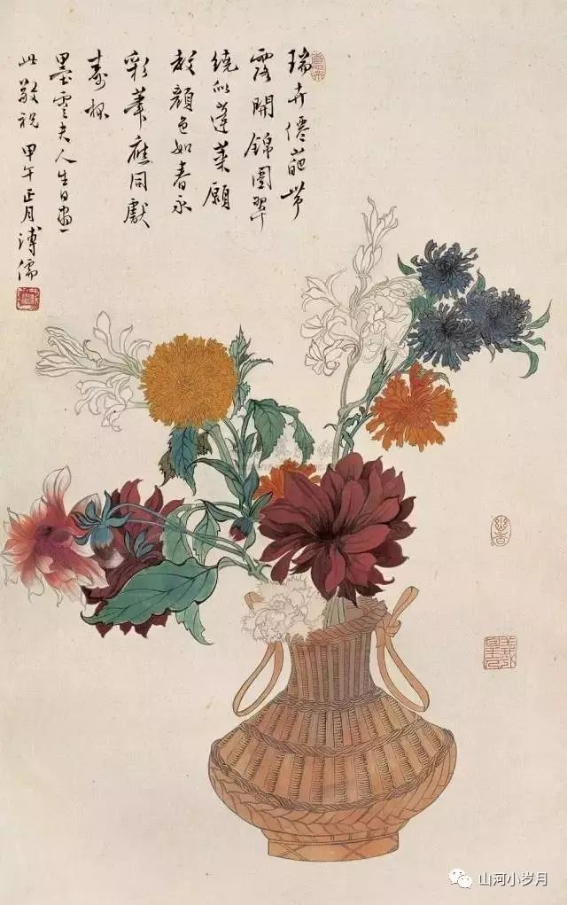 不管我们这些看客如何呐喊,内心如何为溥儒不值痛惜,他对李墨云,真是万般柔肠,含情脉脉。一如1954年,他在墨云夫人生日时,为她画的那一瓶鲜花:
