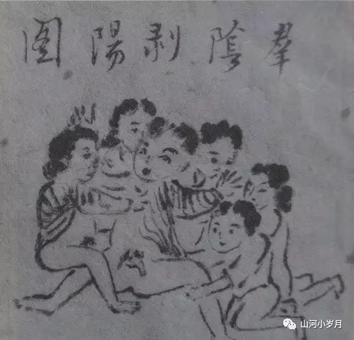 他还画过小黄画。那是1955年,他住在日本旅馆里,有一晚来了五六个陪酒的酒女,“她们先洗澡换上浴衣后大闹花酒,到后来都脱光了浴衣饮酒,连我的衣服也被她们剥光。”他和朋友王之一说起这件事,边说边画,便有了这张《群阴剥阳图》,画上的自己,坐在五个女人中间,剥光裤子作惊恐状,真是好笑至极。