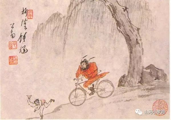 他喜欢画鬼,画钟馗,热衷美食的他,还画过钟馗吃西餐,钟馗骑单车:
