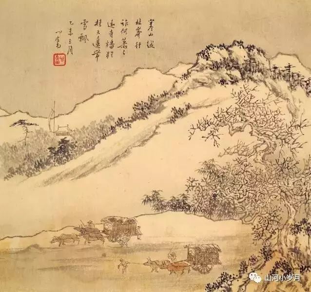 他的山水,初看是马远的北派山水,然而少了一些陡峭凛然,寒山越林,烟柳画桥,风帘翠幕,白涛细浪,如他的内心,淡然而天真。