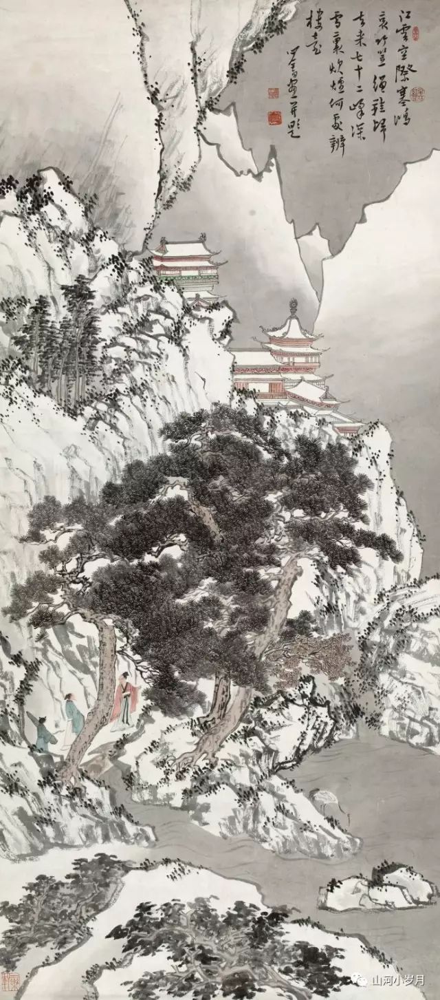 我最喜欢他的雪,着色并不多,然而并不需要太多色彩。那仙鹤,那楼台,那山中的童子,所谓萧疏高逸,说的便是这样的意境吧。