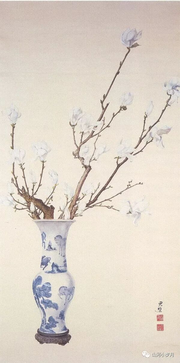 《白玉兰(White Magnolias)》1935年 170.5×85cm 纸本设色