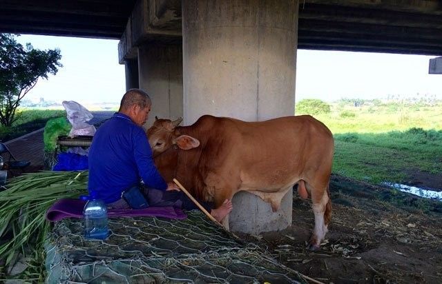 只要到东港溪畔,就会看到他。但是我先看到的是牛。
