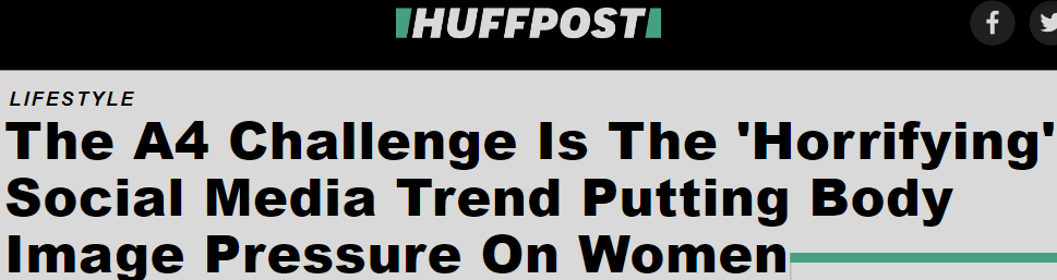 ▲A4腰成为现象级后,英国《赫芬顿邮报》这样写:“A4腰”是向女性身体形象过分施压的又一场社交媒体活动