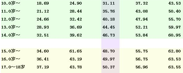 根据我国发布的7-18岁少年儿童发育标准,90斤对应的是13-14岁女童体重的中间值。
