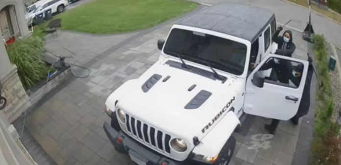多伦多CTV新闻获得的视频显示,当时一名男子从屋子里走出来,打算进入他的白色Jeep Wrangler Rubicon座驾。