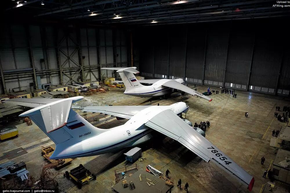 13、总装车间生产线上大约有10架处于各组装阶段的伊尔-76。