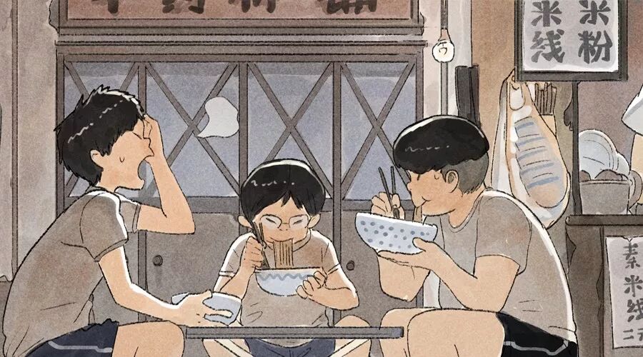 我也呼噜吸了一大口,说,“跟你自己在家做的没啥区别吧,不就多了点肉丝儿。”我爸笑着说,“比我做的好吃,面条里有肉跟没肉,味儿能一样吗?”