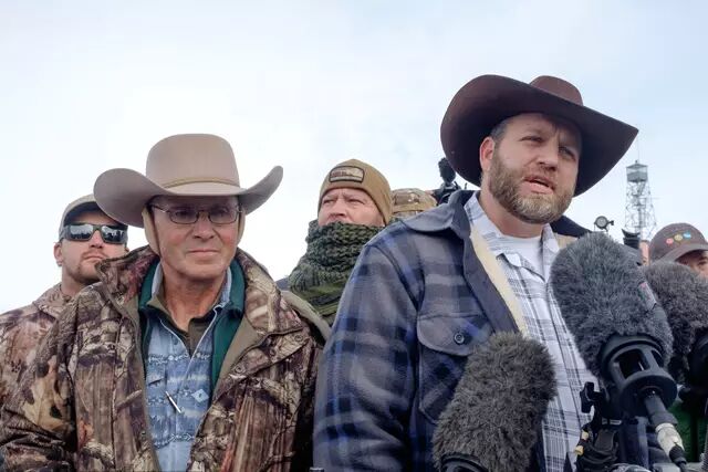 武装牛仔的负责人是来自内华达的牧场主安蒙·邦迪和他的两个兄弟。他们的父亲克利文·邦迪曾经在2014年因为长达10年在联邦政府属地放牧而不交税被罚款100万美元。克利文不交税,也不交罚款,对联邦政府土地管理局的诉讼置之不理。最后政府只能出动骑手和直升机在联邦政府保护区内围捕没收了近400头牛,其中绝大多数属于邦迪家族。