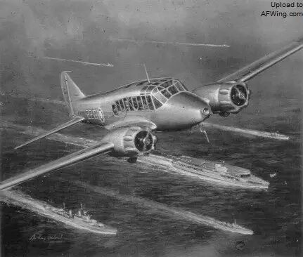 描绘世界上第一部机载雷达试飞情景的航空画