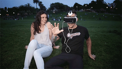 拍这段视频的一定不是什么好人,这哥们在公园里找到几对情侣,然后让他们在另一半的注视下观看VR小电影……